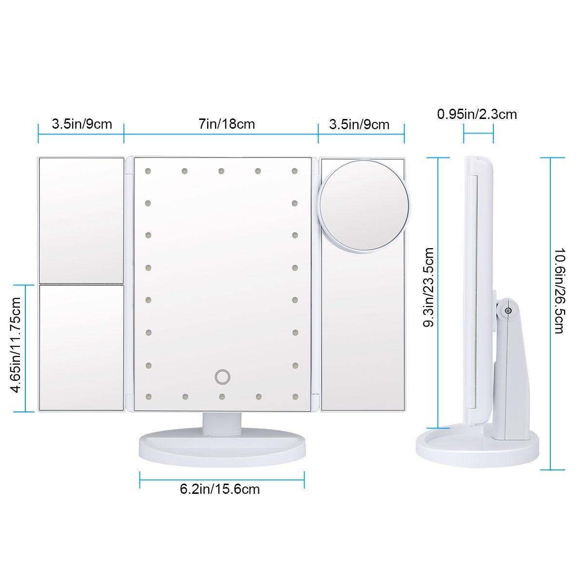 Lighted Makeup Mirror: 3 Panels that provides a wide-angle viewing for you to see your face clearly and make a more perfect makeup with each detailed taken care of.