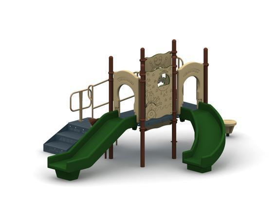 The Minnie Me is a great value for children 2-5. This structure packs 8 play events in a small footprint. Kids will be able to jump, slide, and use the fine motor skills all in one place.