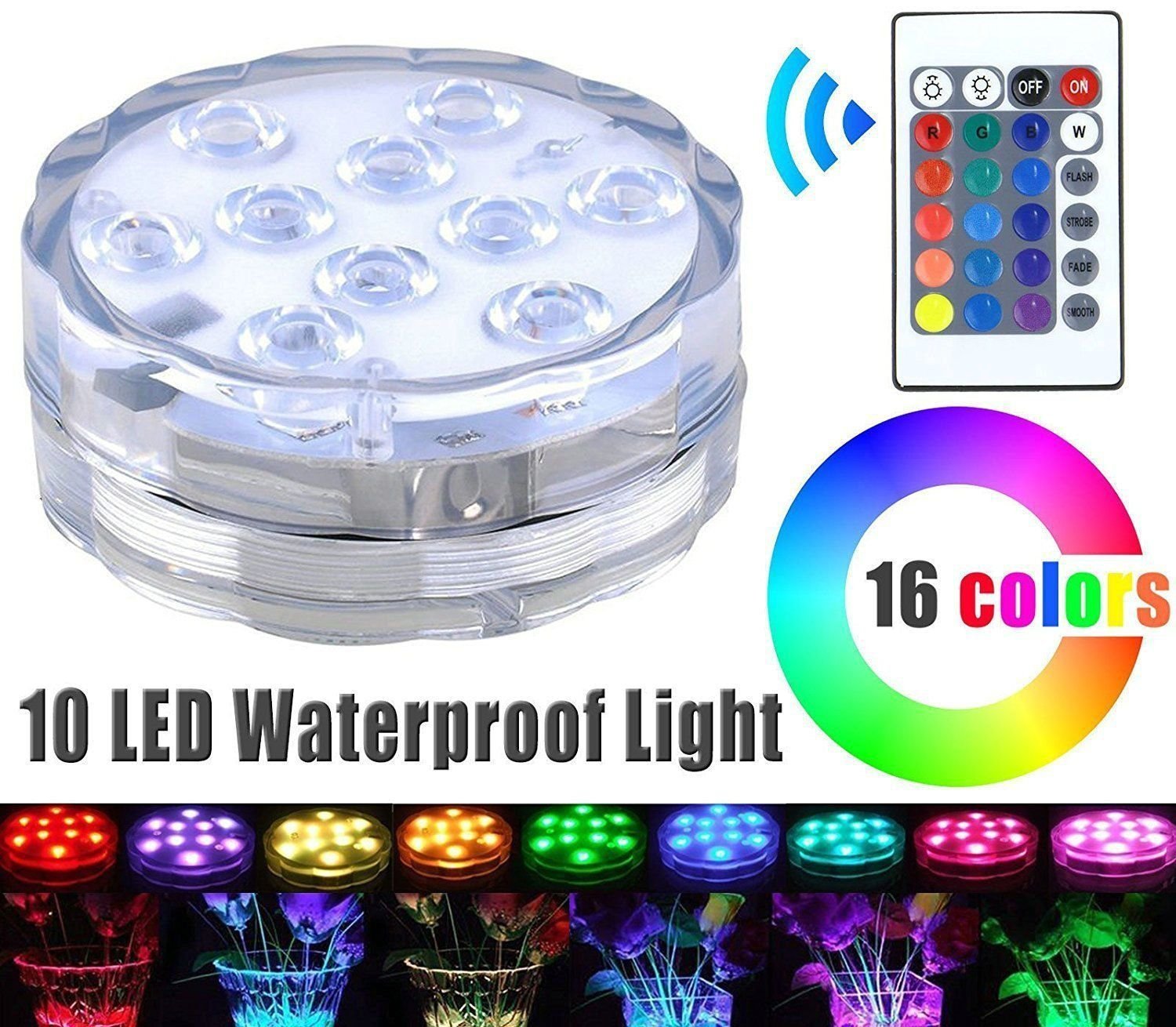 Waterproof, Remote Controlled, Battery Operated, Wireless Multicolor, Submersible Led Lights. Amaze your friends and neighbors, simply place one of these LED lights in your pool, or in a vase. Use with or without the optional remote control.
