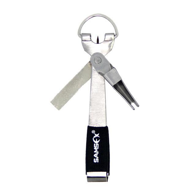 A fisherman's best friend, complete with nail knot fork, line clipper, eyelet cleaner and hook sharpener, the combo tool is a MUST HAVE fishing accessory.